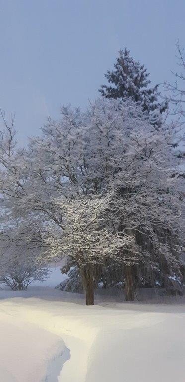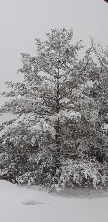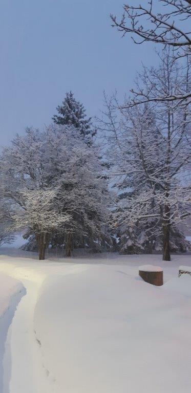 Photos hivernales autour de la Cabane en bois rond prises par Liette Poitras directrice générale de la FAO.