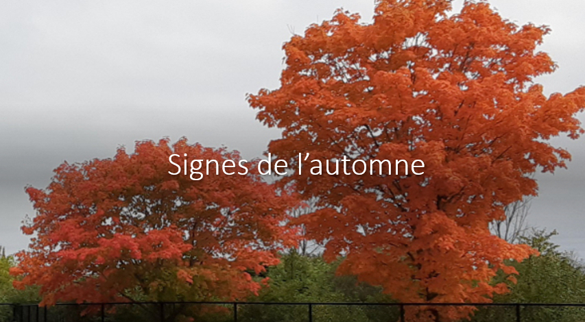 | L'automne au Lac Leamy Photo de Paulette M. Collins | Coloris de feuilles automnales Photo d'André Lapierre | Sentier de randonnée pédestre, parc des Trembles Photo d'André Lapierre | ||