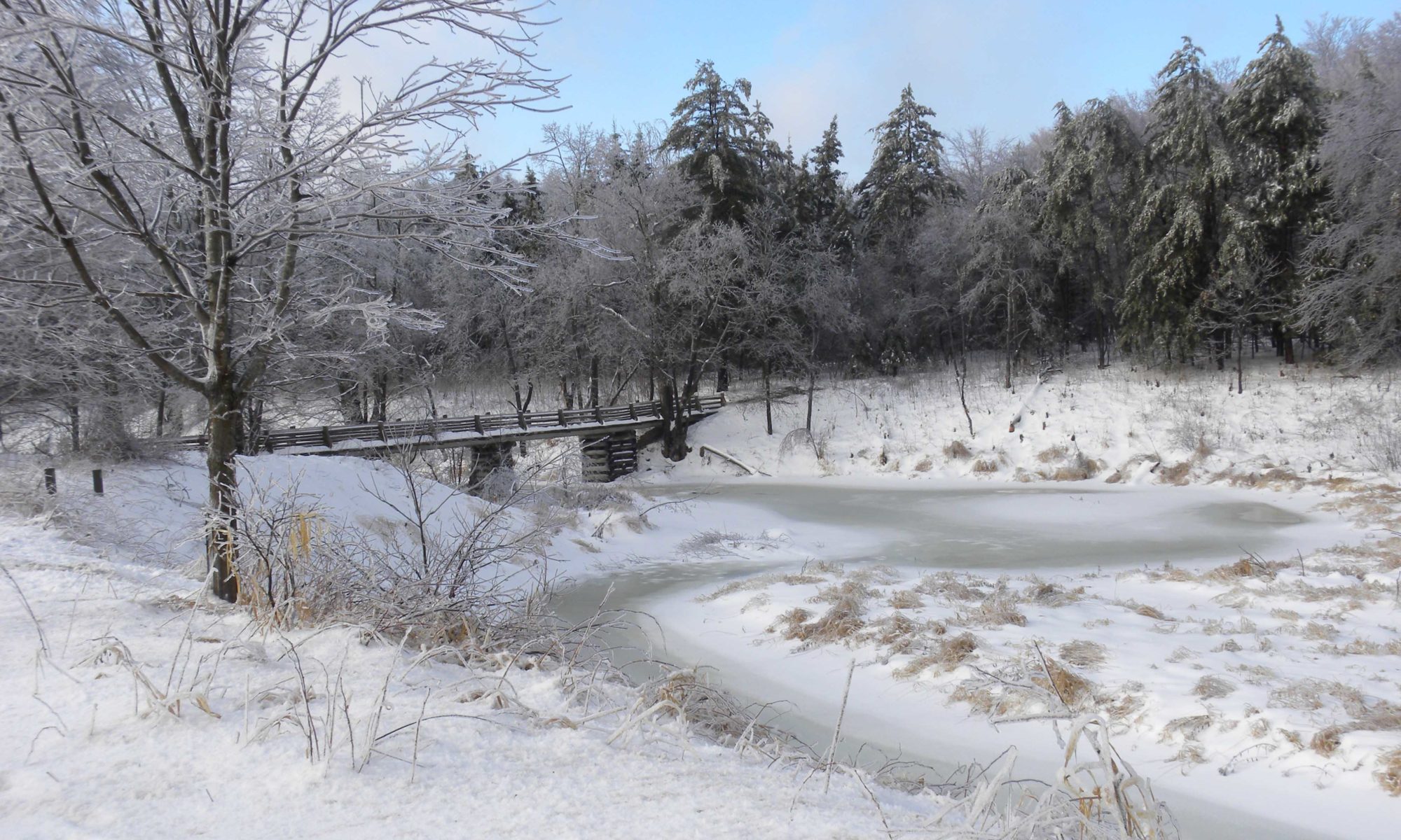 Pont et ruisseau Une photo de Michel Beauparlant Pont et ruisseau L’hiver nous habitera encore un certain temps. Profitons-en pour goûter aux scènes charmantes qui incitent à la tranquillité.