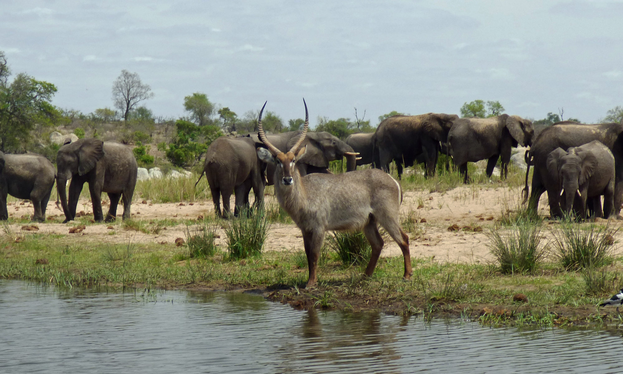 “Nous n’avions pas vu beaucoup de points d’eau dans le parc national Kruger, au nord-est de l’Afrique du Sud. Aussi avons-nous été comblés par cet étang fréquenté par des éléphants, des hippopotames, des crocodiles et de jolis oiseaux.”