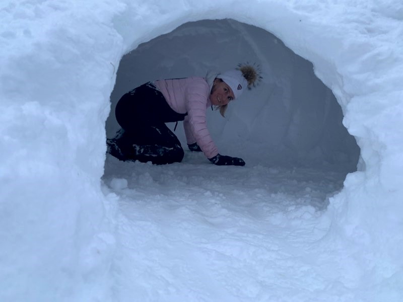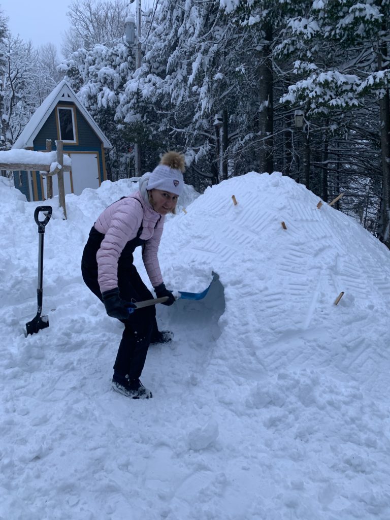 Quinzie, un iglou construit avec de la neige qui, une fois brassée, se cristallise. Celui-ci est le fruit de la bordée du 31 décembre qui est tombée au chalet d’Angéline Johanne Bilodeau (fille d’Ida et Gilles Bilodeau) et de son conjoint Louis Legault. Le chalet se trouve à Saint-Sauveur. Voici quelques images qui montrent les étapes de la construction.
