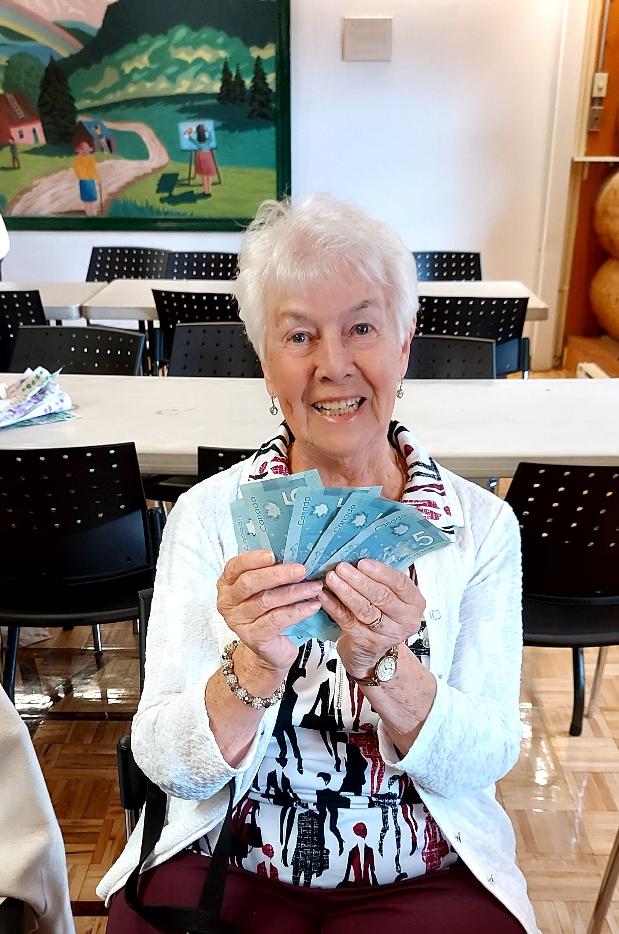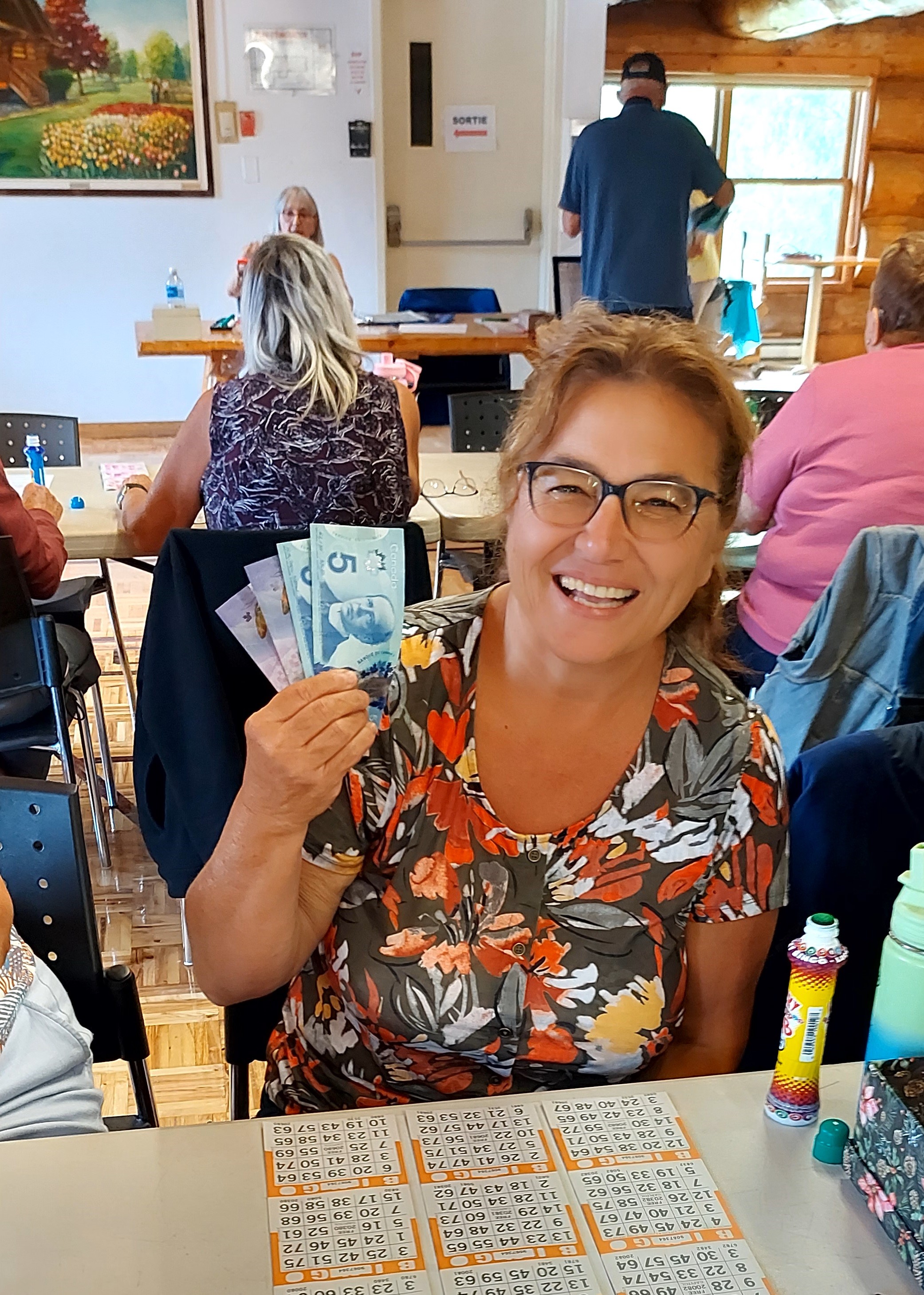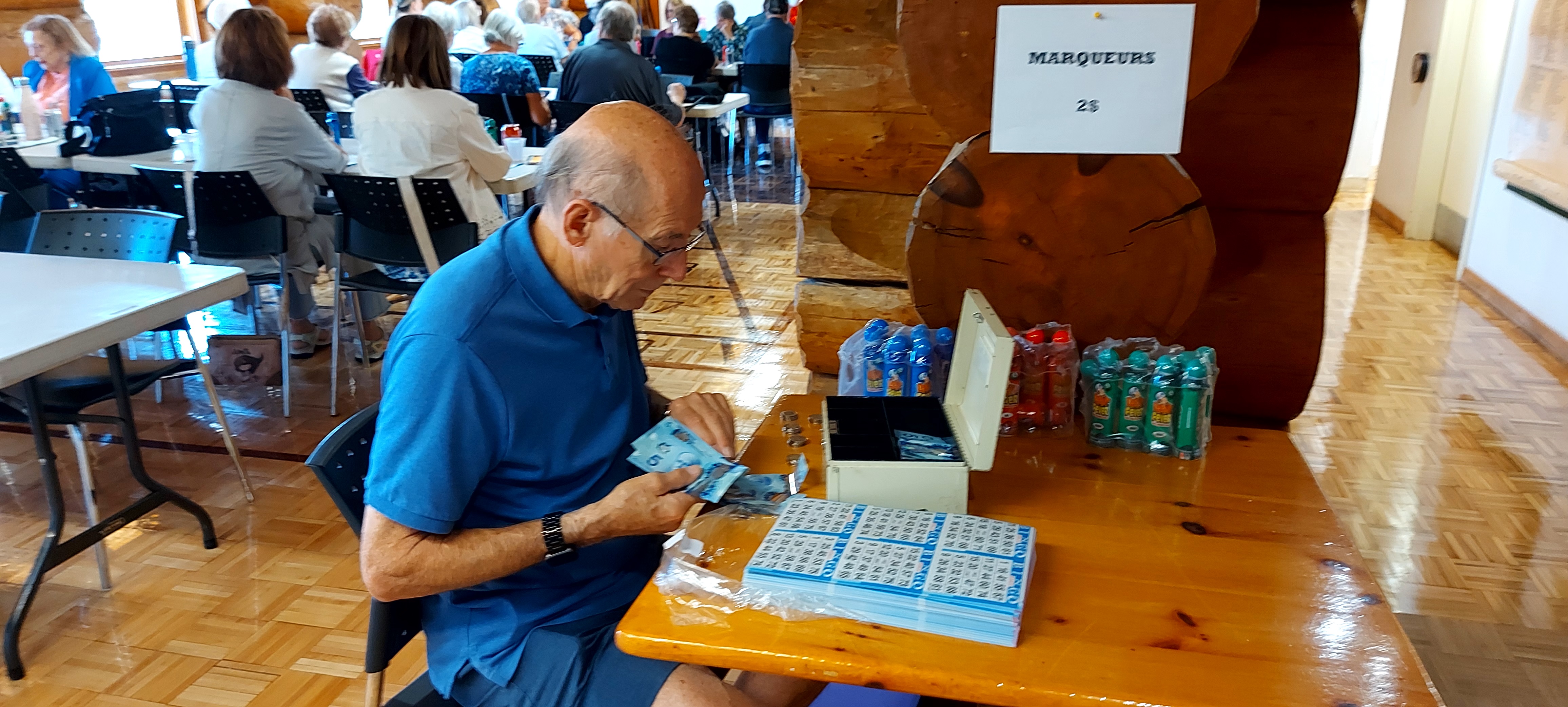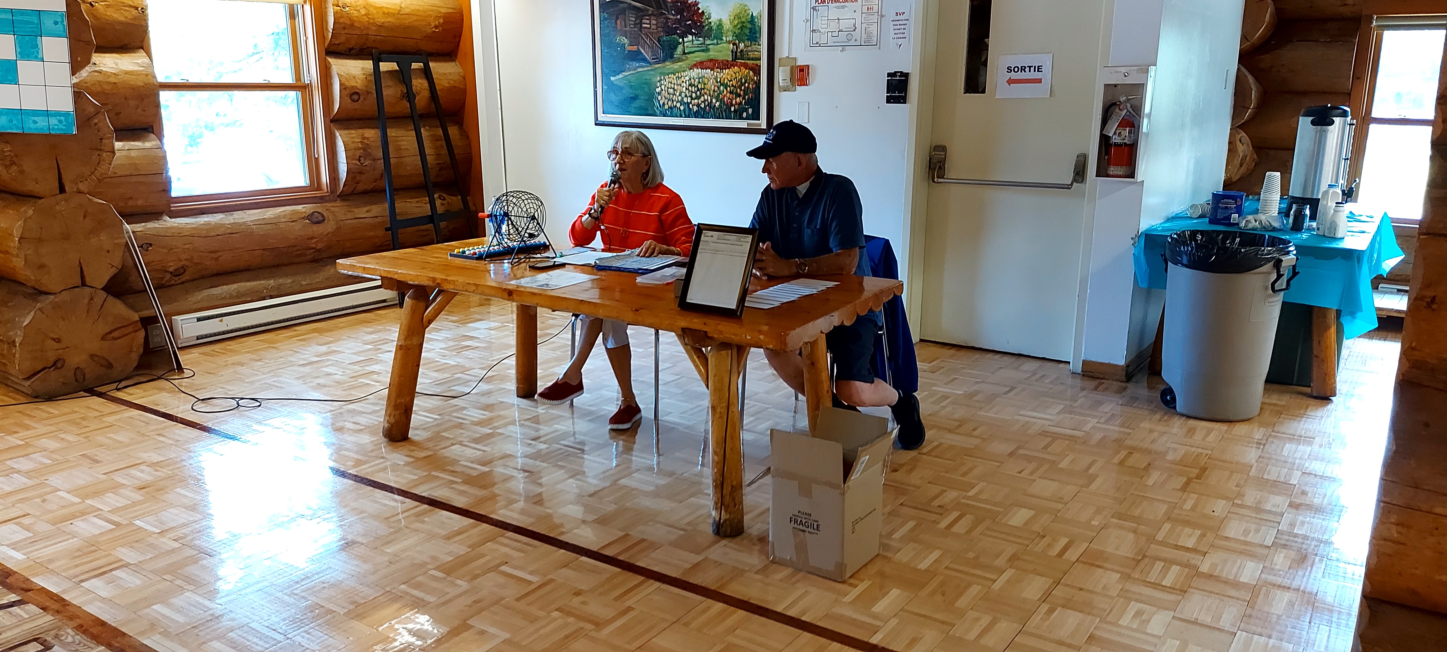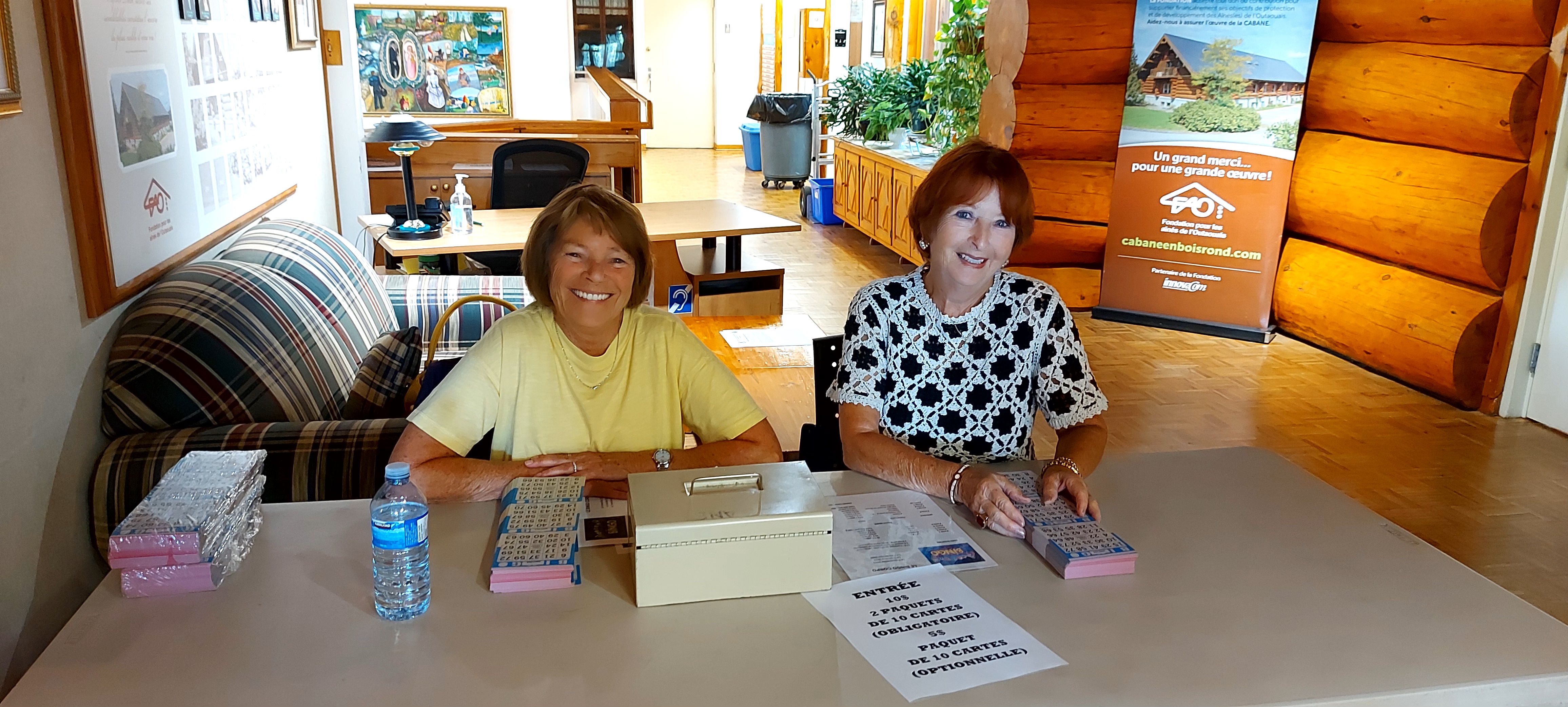 Le 1er bingo à la CORPO Danielle et Nicole qui nous accueillent au bingo Paul qui vend des cartes pour le 50/50 Gisèle, annonceur de numéros et Camille, son aide La première gagnante, Ginette De Repentigny