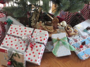 En début d’après-midi on grignote les petites bouchées accompagnés d’un apéritif. Chacune(e) a préparé un ou des jeux, on s’amuse beaucoup et Vincent a beaucoup de plaisir à voir sa grand-maman faire un dessin, il faut songer longtemps pour trouver…., Quelques-uns chante, on danse, ouvre quelques cadeaux, ceux-ci ont beaucoup diminué avec les années. On donne plus d’importante à être ensemble. Vers 8 heures, le repas festif de Noël, on recommence les activités, ouvre les bas de Noël, on mange encore et tout le monde couche à la maison. Le lendemain matin, un brunch est servi, on continue les jeux etc..
